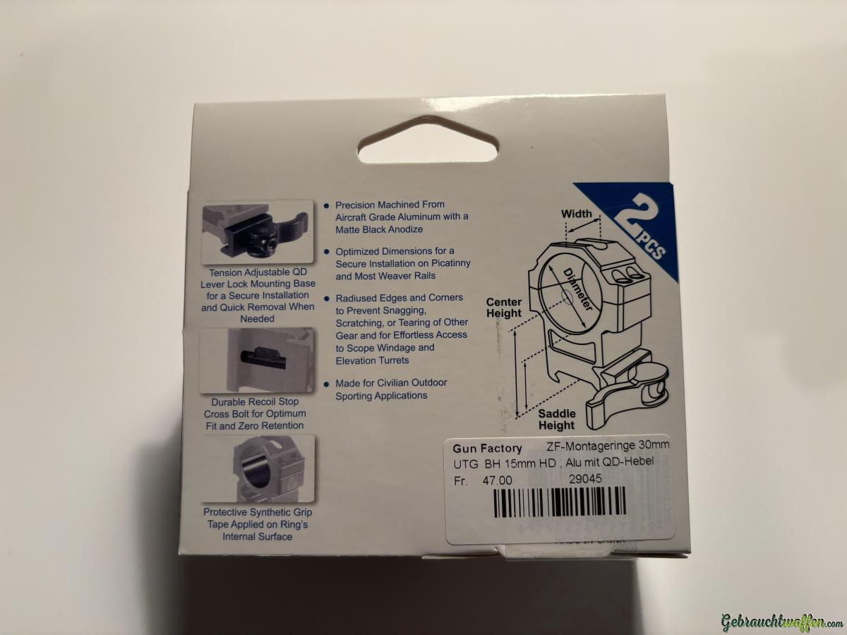 Zu verkaufen: ZF Montageringe 30mm UTG BH 15mm mit (QD)Schnellspannverschluss für Picatinny Rail. NP.47.-,VP 40. TWINT möglich, Versand inbegriffen.