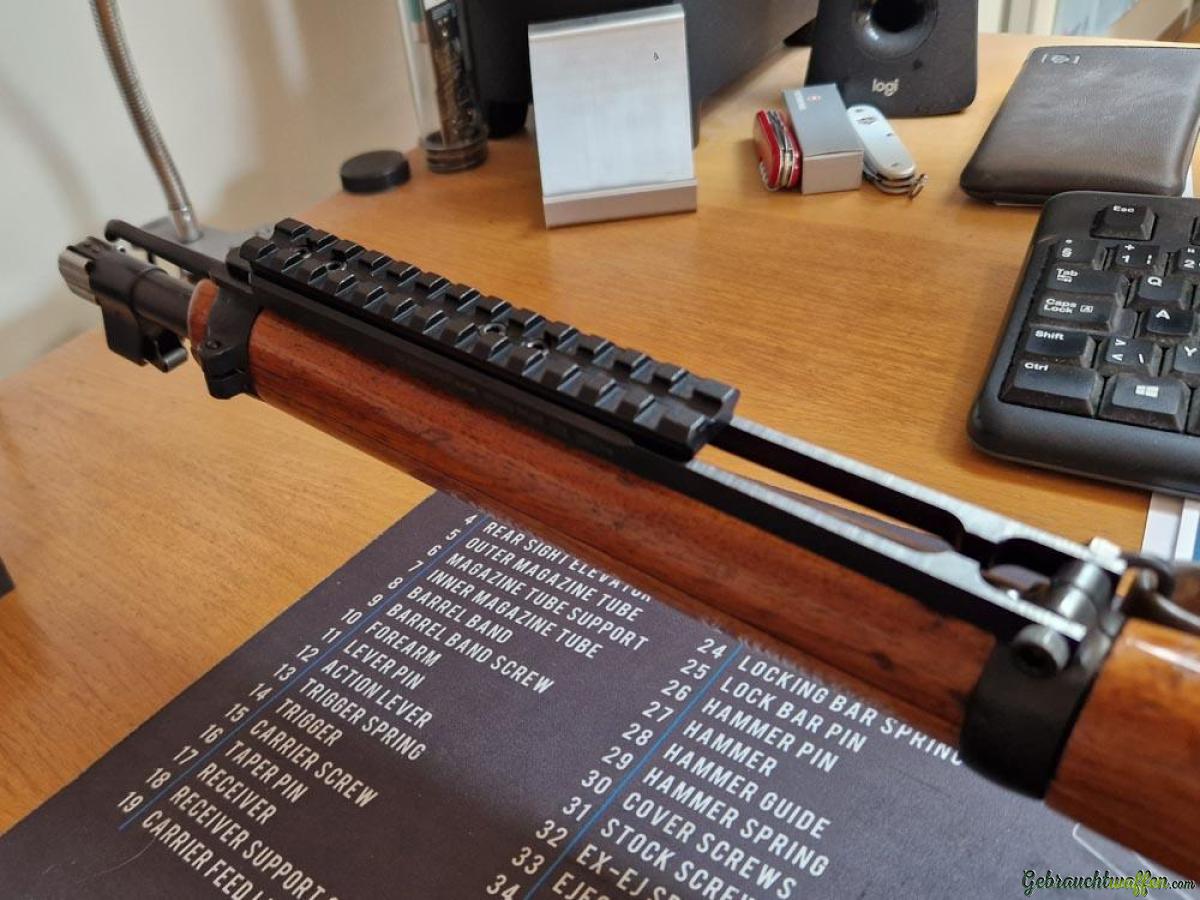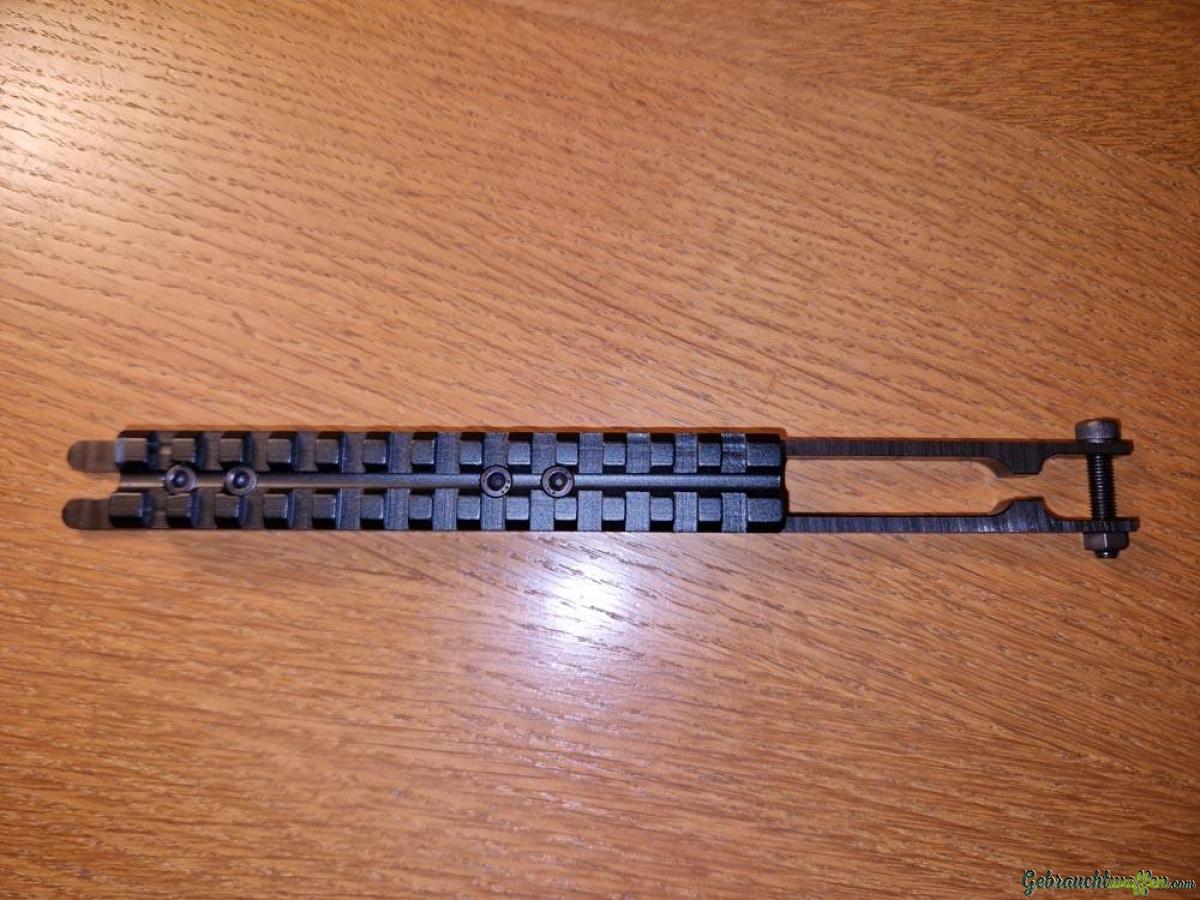Schiene aus brüniertem Stahl, Picatinny-Schiene aus schwarz eloxiertem Alu.