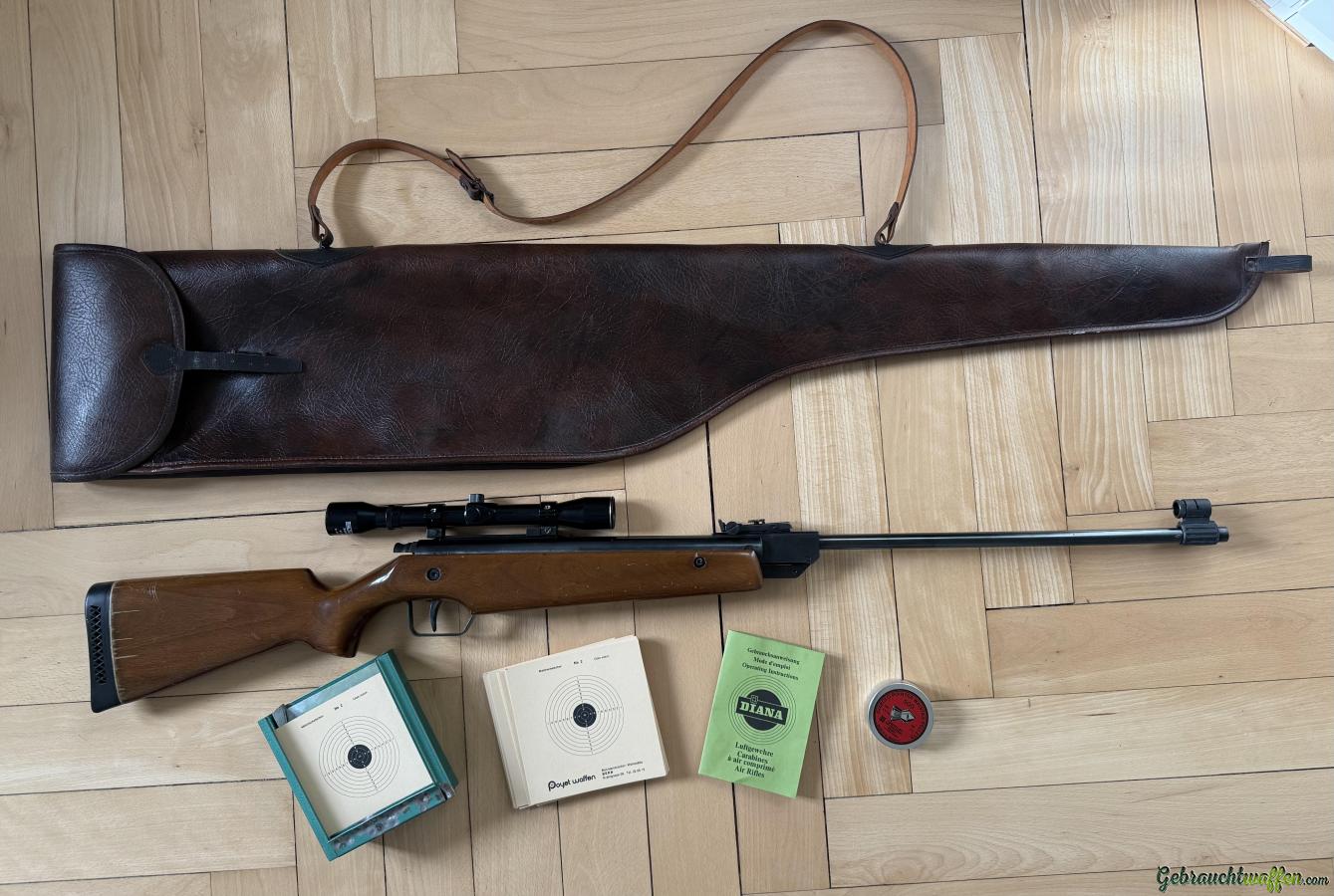 Mit Zubehör: Zielscheibenhalter aus Metall, ein paar Zielscheiben, rund 250 Diabolokugeln, Luftgewehrtasche, Bedienungsanleitung.