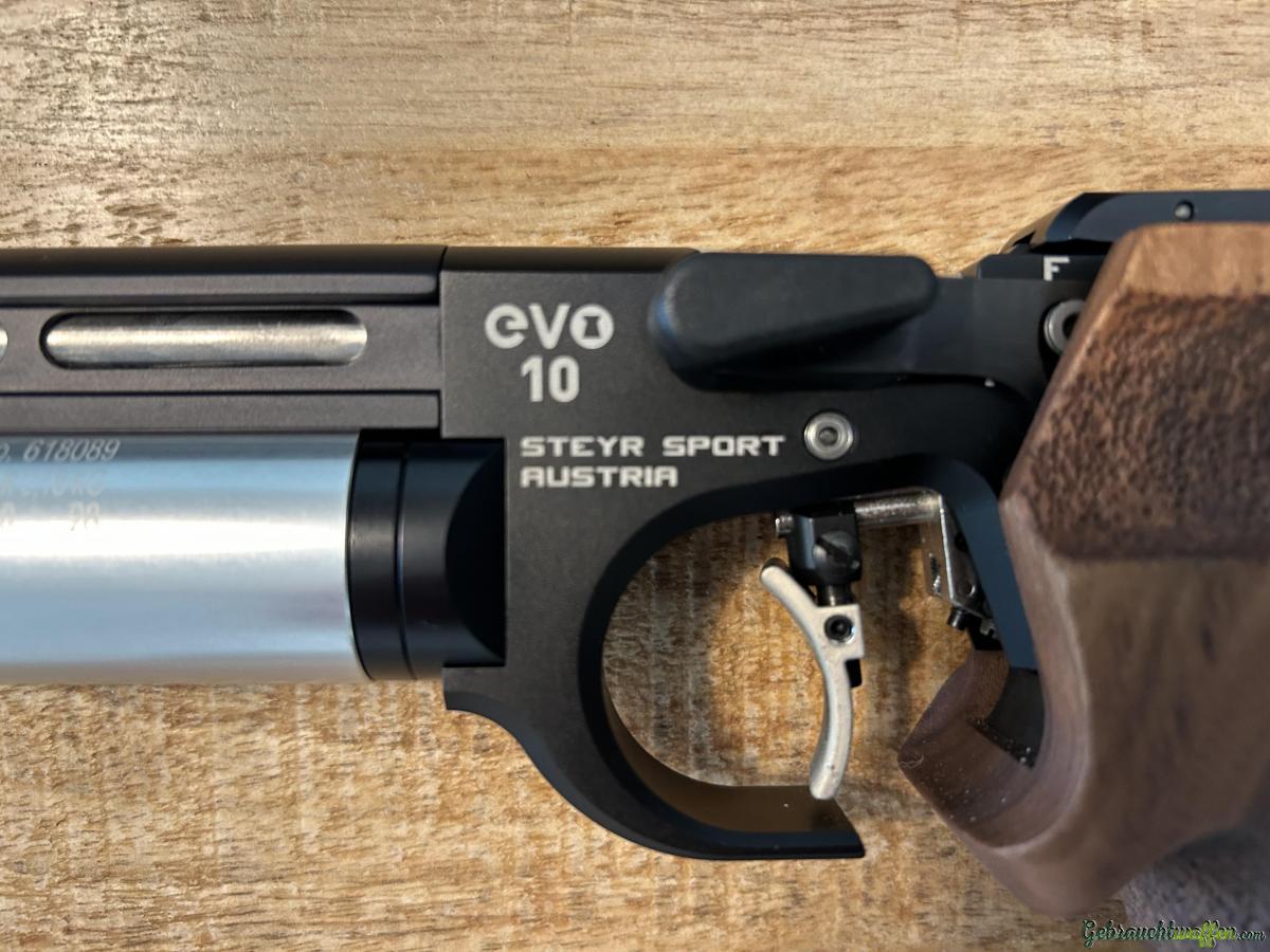 Zu verkaufen neuwertige Steyr EVO 10 mit mechanischem Abzug. Sehr geringe Schussbelastung < 1000 Schuss. Griffgrösse L.