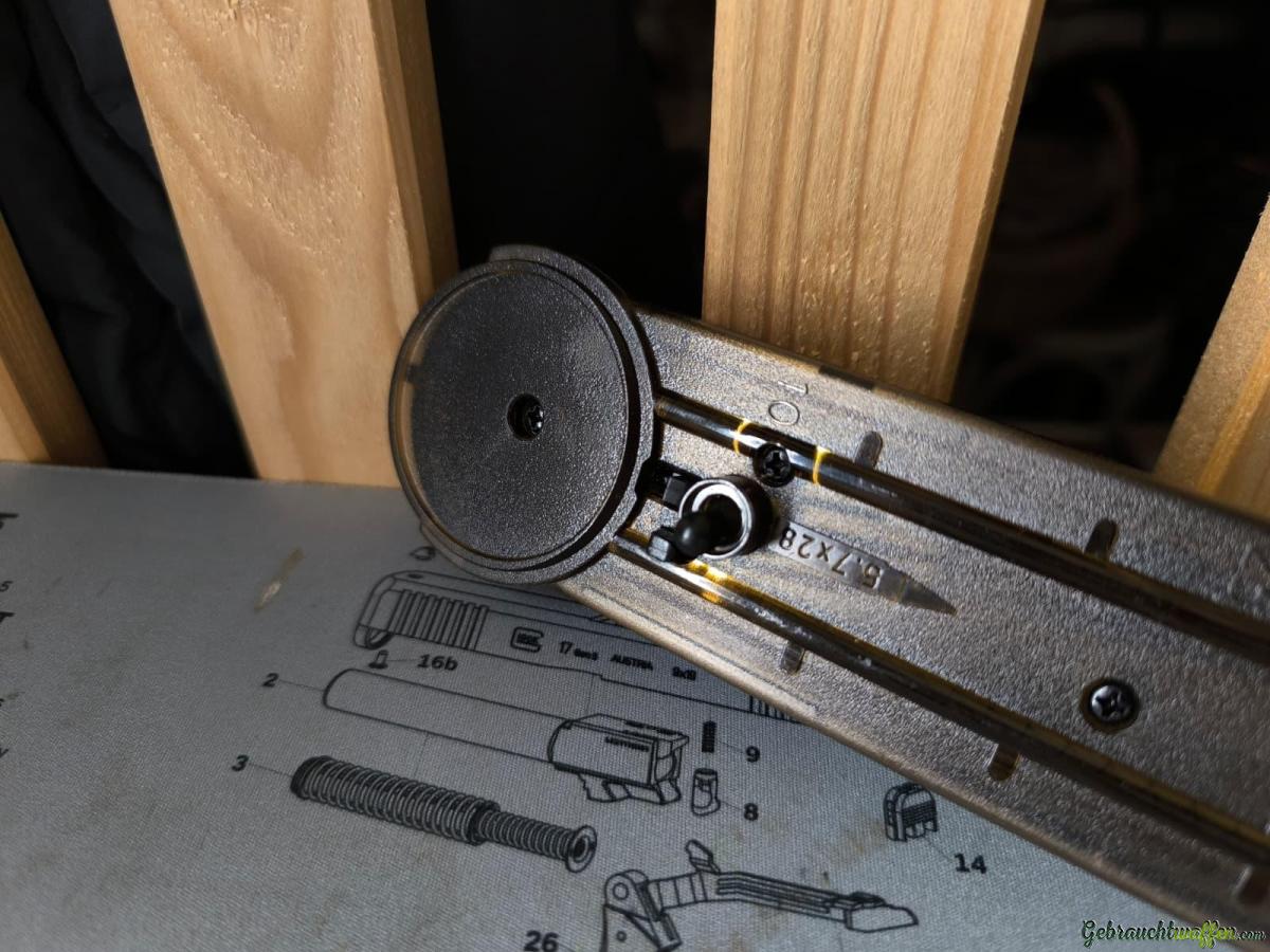 Die Waffe wurde nie gespielt, läuft einwandfrei und ist in neuwertigem Zustand.
