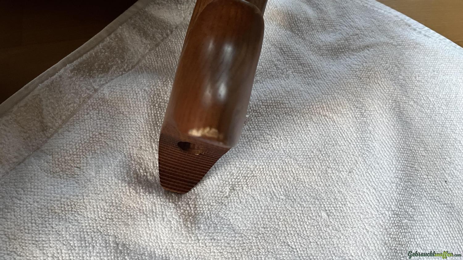 Einen kleinen Abrieb gibt es jedoch an der Unterseite vom Schaft. (Letztes Bild)