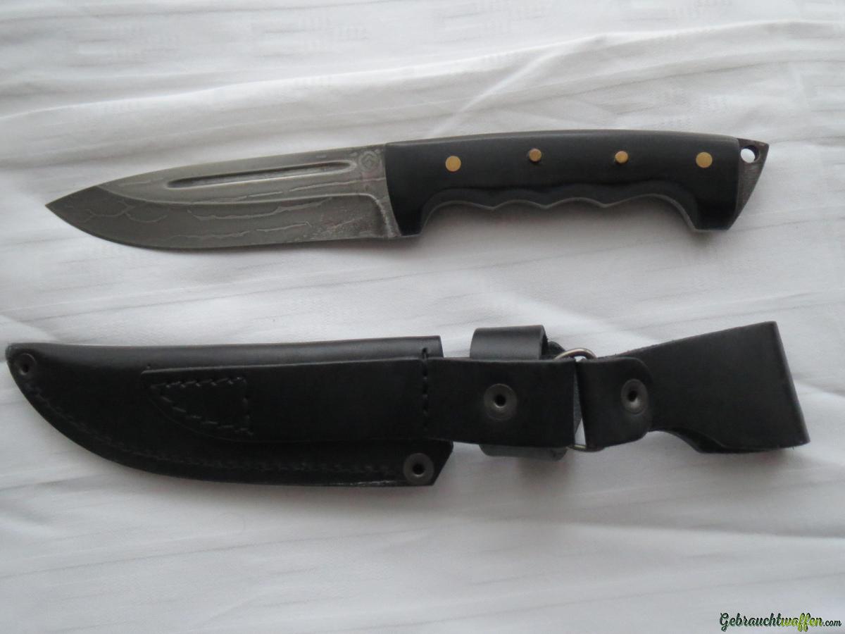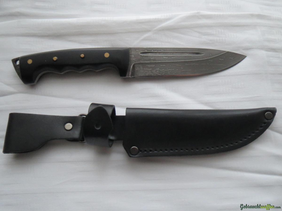Zu verkaufen unbenutztes hochwertiges Jagdmesser aus Russland. Integralmesser mit Voll- Erl. Messerstahl ist Bulat Wootz-Stahl (Schmelz-Damast) vom Messerschmied S.Baranov in Einzelanfertigung. Mit Griff aus schwarzer Hainbuche und schwarze Scheide mit Dangler aus echtem Leder. Masse: Gesamtlänge 260mm, Klinge 130mm, davon Schneide 125mm. Klingenbreite 35mm, Klingenstärke 4,5mm. Härte gem Hersteller 62-64 HRC. Pflegehinweis: Der Stahl ist nicht rostfrei, deshalb nach Gebrauch mit säurefreiem Öl z.B Ballistol od Karmelinöl.Keine Garantie od Rücknahme. Versand zu Lasten Käufer. Abholung erwünscht.NP war 285 EUR.