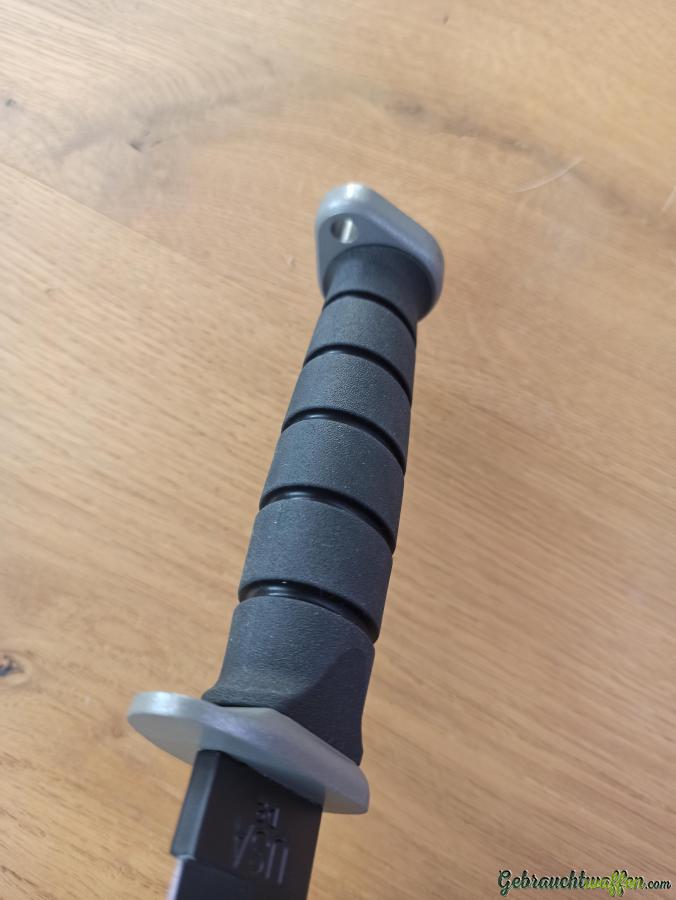 Aus Sammlung: unbenutzt und ungetragen. Das wohl bekannteste Messermodell von Ka-Bar, hier in der Ausführung 'Extreme' aus D2-Stahl, Guard und Abschluss aus Metall, griffiger und rutschfester Kratongriff. Made in Olean NY USA. Inkl. OVP.