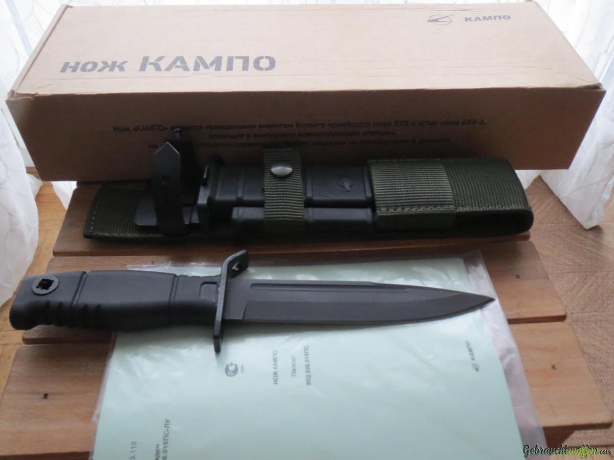 Zu verkaufen original russisches Kampo 6X9 Messer der aktuellen Ratnik Ausrüstung.Ursprünglich die zivile Version ohne Fingerschutz, diesen habe ich nach Vorlage gefertigt und montiert. Mit Molle taugliger Messerscheide intergrierter isolierter Drahtschere, Beinband,und zusätzlicher leichter Messerscheide des Kizlyar Vitaz T.Inkl Original Zertifikat und OVP mit Lagerspuren vom Versand. Masse: Total 280mm,Klinge 160mm,Schneide 150mm, Klingenstärke 5mm, Klingenbreite 30mm.Keine Garantie od Rücknahme.Versand zu Lasten Käufer. Abholung /Besichtung erwünscht.