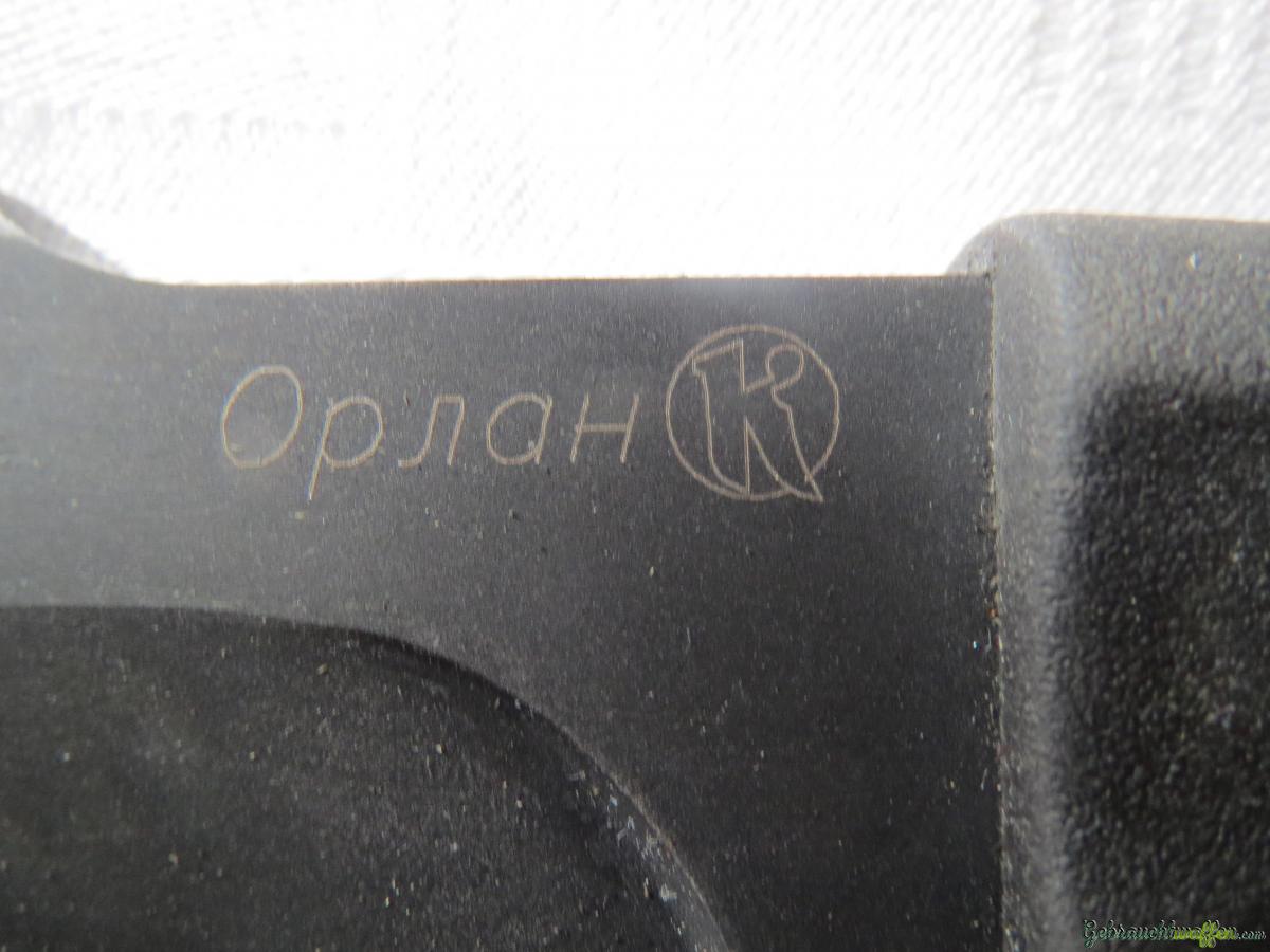 Zu verkaufen leicht gebrauchtes Kizlyar Orlan der frühen Produktionsline. Das mittlere Jagd u Militärmesser ist mit einer robuster Klinge mit bequemem rutschfesten Griff und ein Sporn als Fingerschutz ausgestattet. Mit russischer Lederscheide mir Dangler für Gurte bis 50mm. Der Klingenrücken , habe ich nach vorn , á la Lionsteel abgerundet, die Spitze liegt in der Achse der Griffmitte.Mit Daumenauflage auf dem Klingenrücken.Schneide scharf poliert. rostfreier Stahl 65X13.Gesamtlänge 270mm, Klinge 140mm, Schneide 135mm. Klingenbreite 32mm,max, Klingendicke 5mm Durchgehender Erl.Versand zu Lasten Käufer. 8.50, Keine Rücknahme.