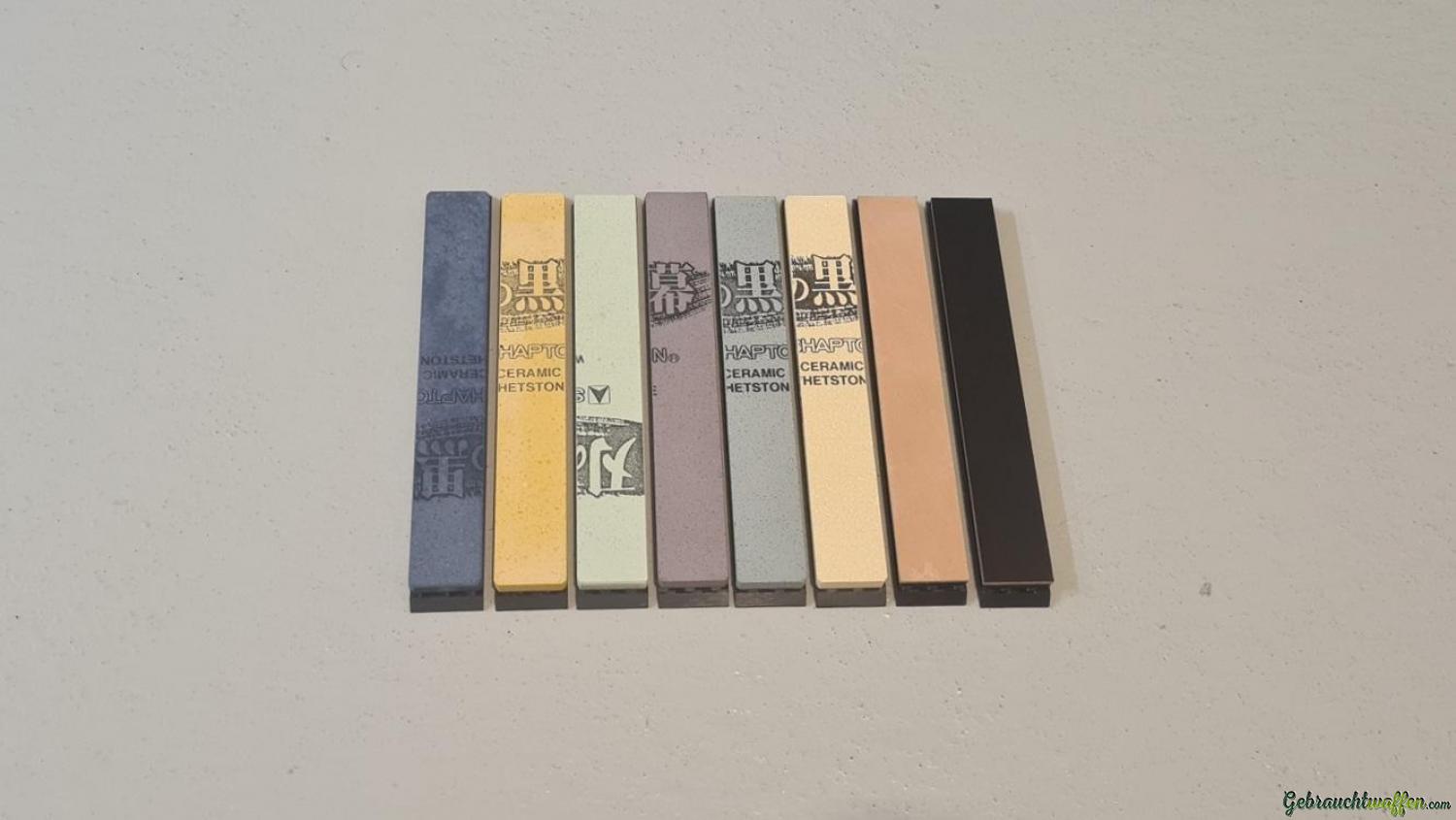 Grosse Auswahl an Schleifsteine von Shapton Pro für geführte Schleifsysteme wie Edge Pro, Apex, Hapstone, Tsprof oder ähnliche Systeme zu verkaufen. Bitte vor dem Kauf anhand den Abmessungen der Steine die Kompatibilität zu ihrem Schleifsystem prüfen. Die Schleifsteine können als Set in einer extra dafür angefertigten Box oder einzeln gekauft werden.
