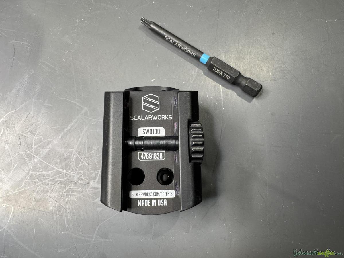 Zum Verkauf steht eine gebrauchte Scalarworks LEAP/01 Micro-Halterung, Modell SW0100 (absolute Cowitness). Verkauft in Originalverpackung mit Original-Torx-Schrauben und Torx T10-Verlängerungsbit.