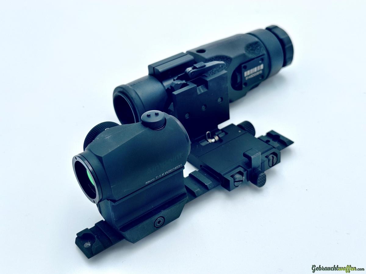 Verkaufe wegen Nichtgebrauch neues Aimpoint Micro T-1 2 MOA (Garantieaustausch Dezember 2025) zusammen mit neuwertigem Aimpoint Vergrösserungsaufsatz Booster 6XMag-1 inkl. B&T FLIP-SIDE QD BASIS NAR.