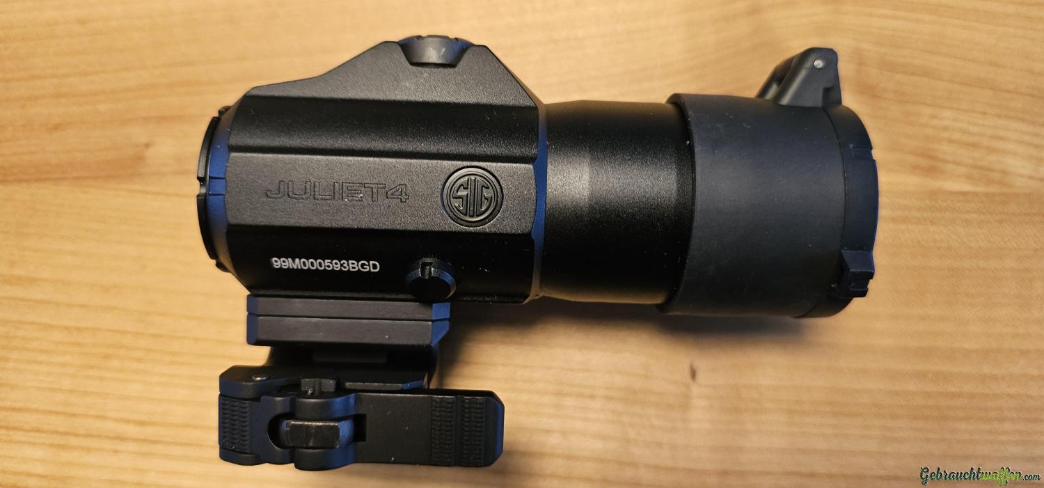 JULIET 4 Magnifier ist einer Vergrößerungsoptik für Rotpunktvisiere. In Kombination mit den Romeo 4 Rotpunktvisieren erreichen SIe so ein noch breiteres Anwendungsfeld durch die zusätzliche 4-fache Vergrößerung. Dadurch das der Magnifier einfach zur Seite weggeklappt werden kann, können Sie die Vergrößerung im gewünschten Zoom bei Bedarf einfach zuklappen für maximale Flexibilität bei wechselnden Zielentfernungen.