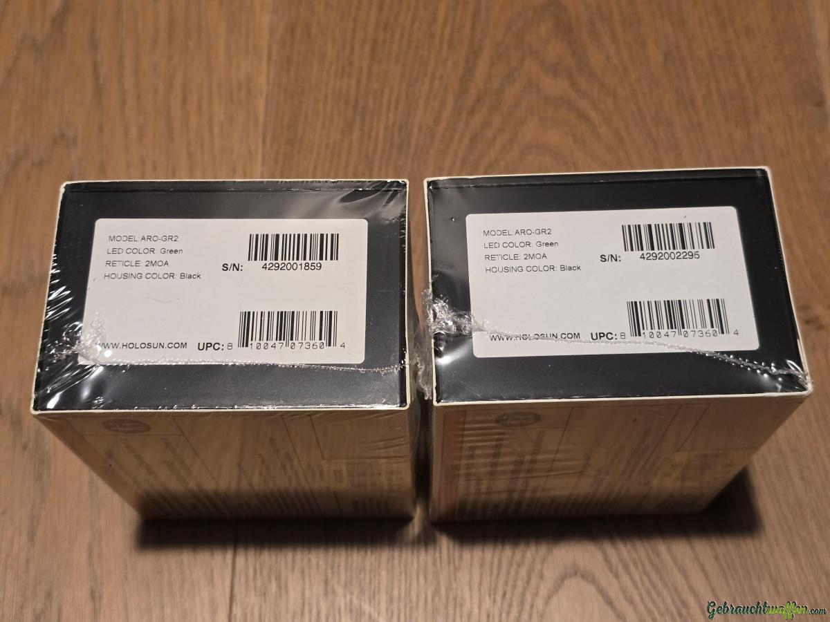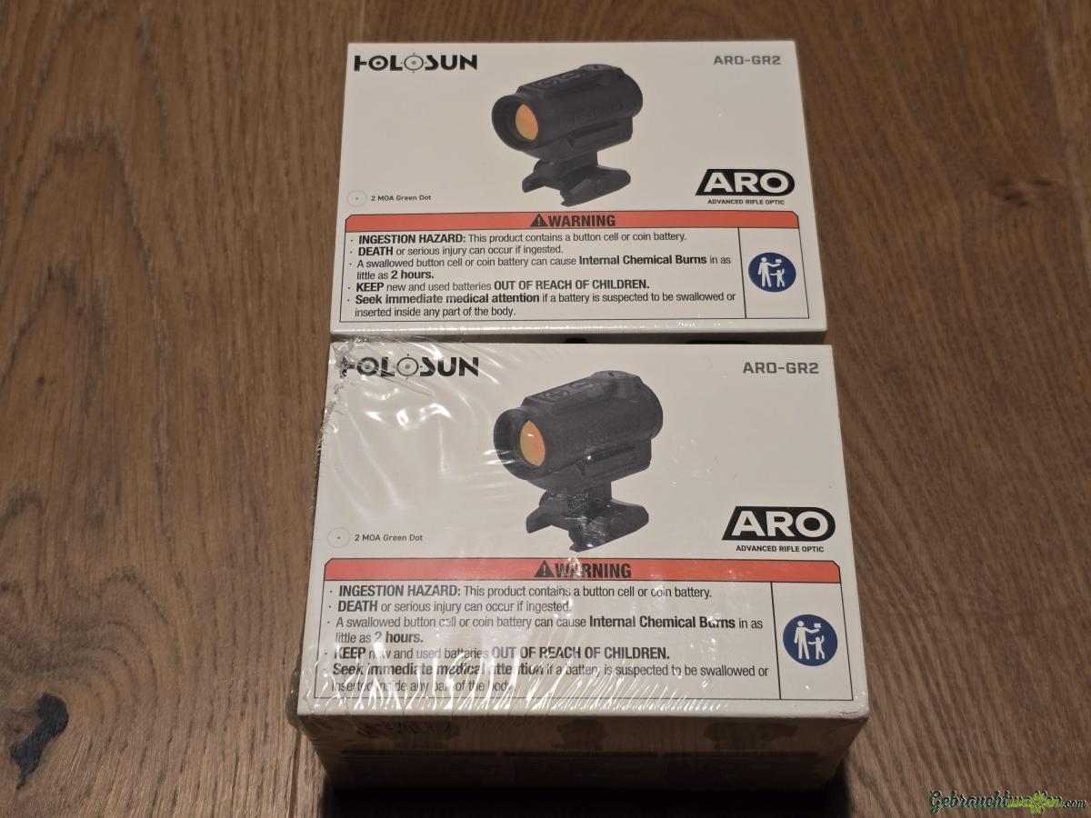 Ich verkaufe zwei Neue (noch in den Plastik eingeschweisste) und ungebrauchte Holosun ARO-GR2 Grünpunktvisiere / "Reddots". Der perfekte Aimpoint Micro T-2 "Klon" - einfach wirtschaftlich viel sinnvoller (es kann halt nicht auf jede Waffe ein Aimpoint...). Dennoch extrem robust, innovativer als Aimpoint, kompatibel mit Nachtsichtgeräten usw. Klare "Klicks" beim Verstellen / Einschiessen. Kommt mit hoher (abgebildet) und niedriger Picatinny-Montage.