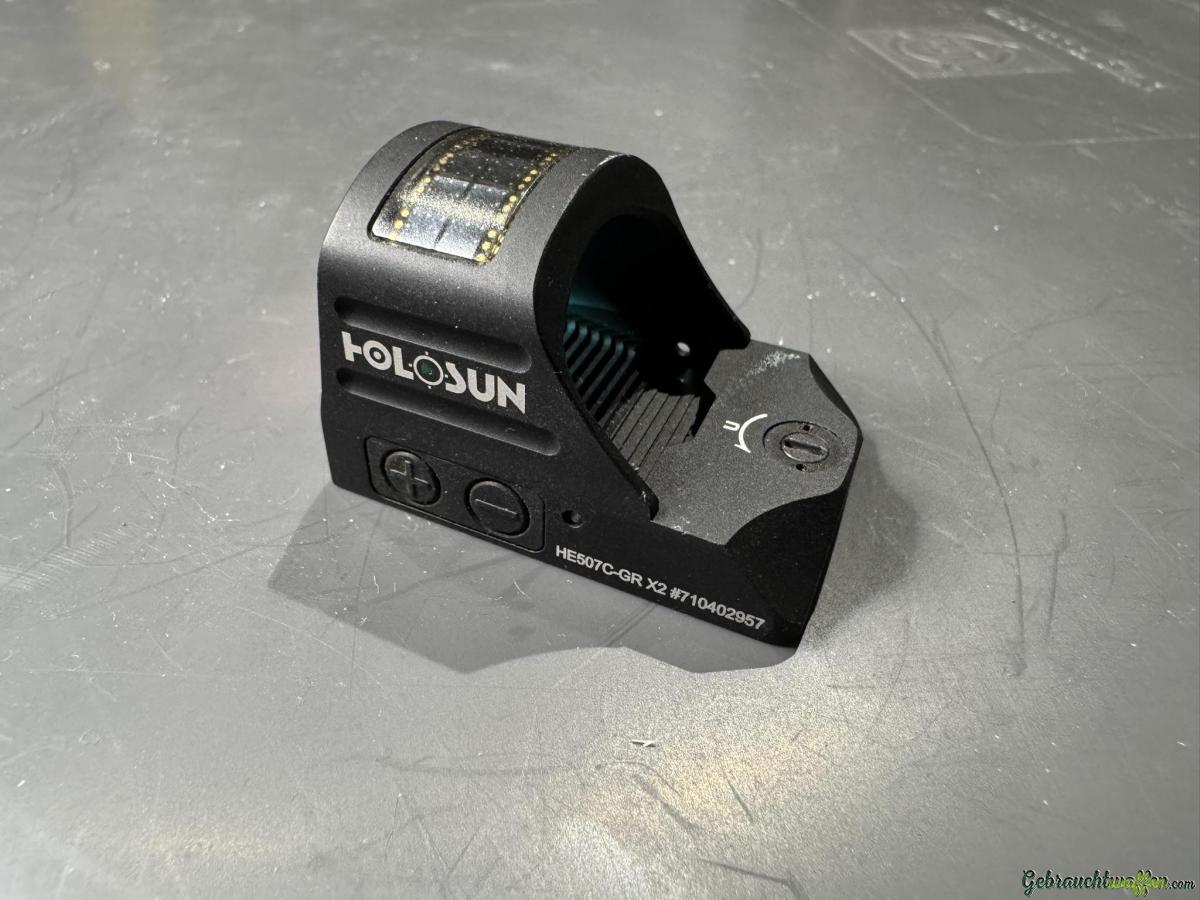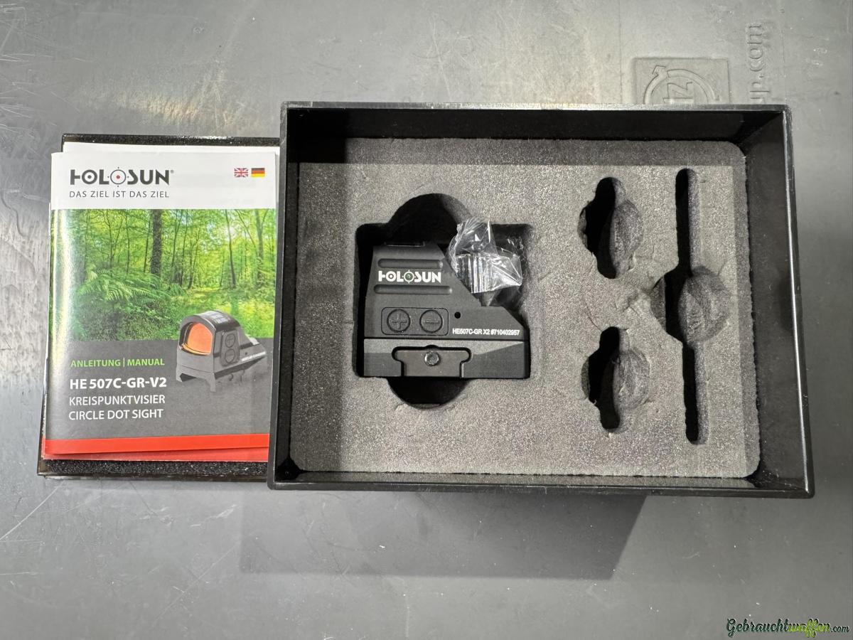 Zu verkaufen ist ein gebrauchtes Holosun HE507C-GR X2 Grunpunktvisier. RMR-Befestigungsmuster, Multi-Absehensystem (2 MOA Punkt, 32 MOA Kreis oder beides), Shake-Awake-Technologie. Verkauft mit Originalverpackung, 3 Packungen Schrauben für verschiedene Befestigungssysteme, niedriger Picatinny-Halterung, Linsenreinigungstuch und Handbüchern.