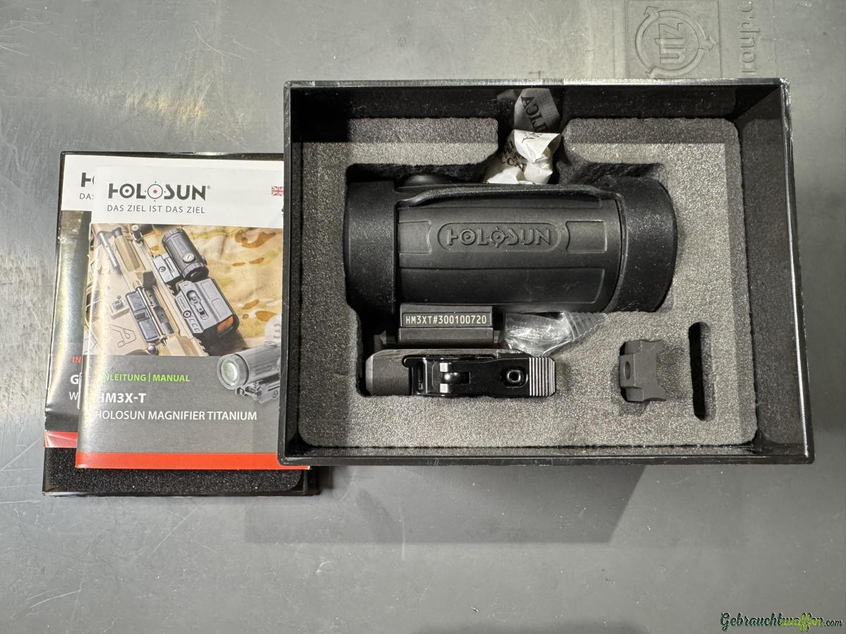 Zu verkaufen ist eine Holosun HM3XT Lupe. 3-fache Vergrößerung, Titankörper, modulare QD-Halterung. Verkauft in Originalverpackung mit Bikini-Objektivdeckeln und Handbüchern.