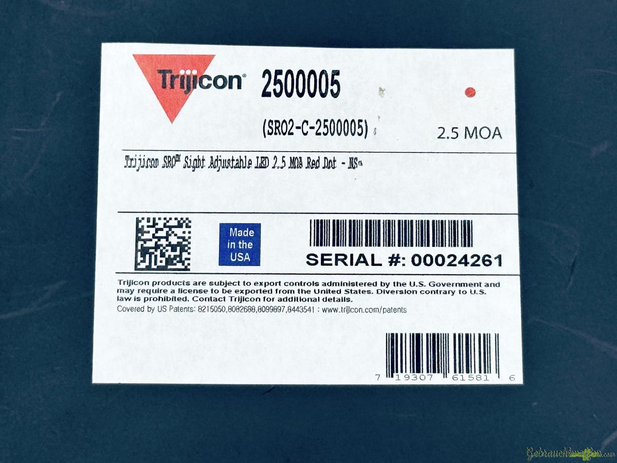 Verkaufe wegen Nichtgebrauch neuwertiges Rotpunktvisier Trijicon SRO mit 2.5 MOA Punkt (Schussbelastung ca. 2‘000 Schuss).