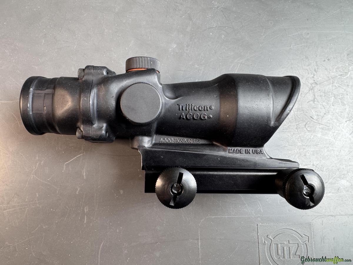 Ich verkaufe ein altes Trijicon ACOG 4x32 TA01NSN, ausschließlich mit Tritiumbeleuchtung und einem 556-NATO-BDC-Absehen für Entfernungen bis zu 800 m. Das Tritium ist unter geeigneten Bedingungen (bei schwachem Licht im Innen- und Außenbereich) noch gut sichtbar, die Linsen an beiden Enden sind klar und kratzerfrei, das Gehäuse ist vollständig intakt. Das Zielfernrohr wird mit der Standard-Picatinny-Schienenhalterung mit zwei Rändelschrauben verkauft. Dieses ACOG weist auf der linken Seite eine NSN-Nummer (NSN 1240-01-412-6608) und auf der rechten Seite in der Nähe der ACOG-Markierung einen Bibelvers (Joh 8,12) auf.