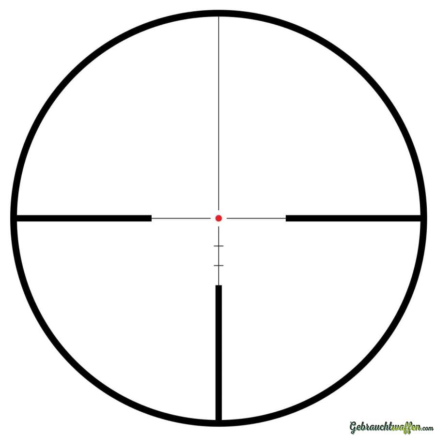 Schnellverstelltürme, Paralaxenausgleich, beleuchtetes Absehen LR Dot (wie 4A-I), Linsen von Okular und Objektiv 21-fach vergütet und in perfektem Zustand.