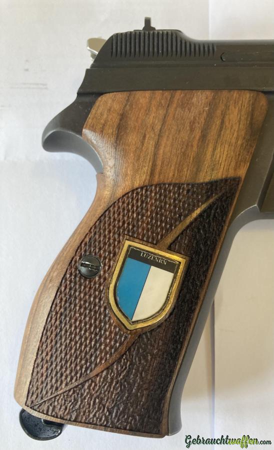 Es sind Griffschalen mit Luzerner Wappen montiert und die originalen gibt es noch dazu.