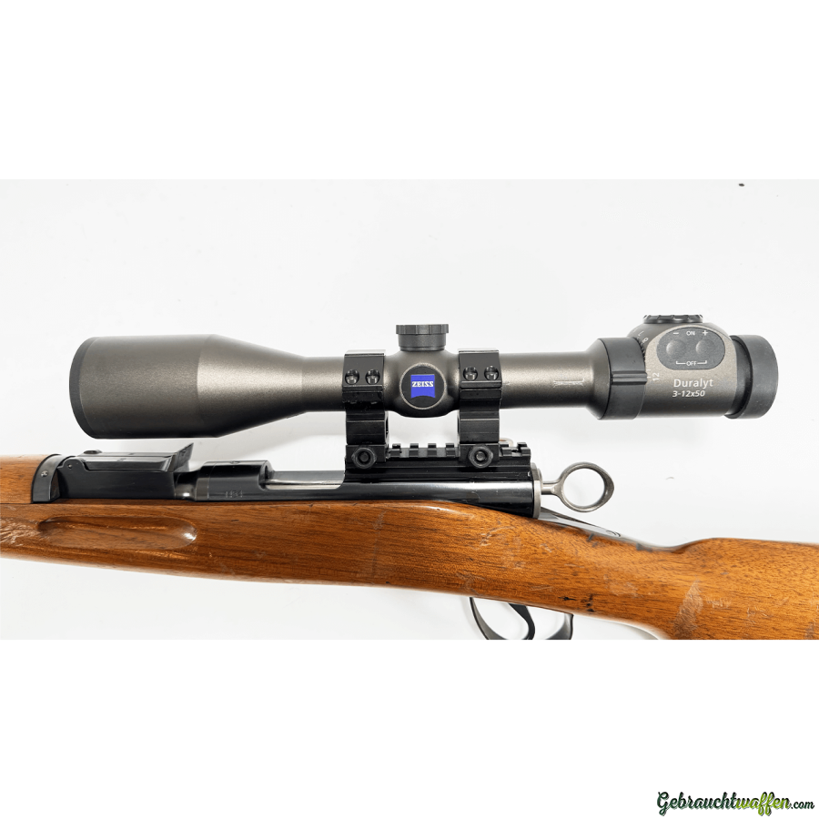 - Visée : organes de visée militaires mécaniques (guidon à lame, hausse tangentielle réglable) + lunette ZEISS Duralyt 3-12x50 montée avec colliers de qualité