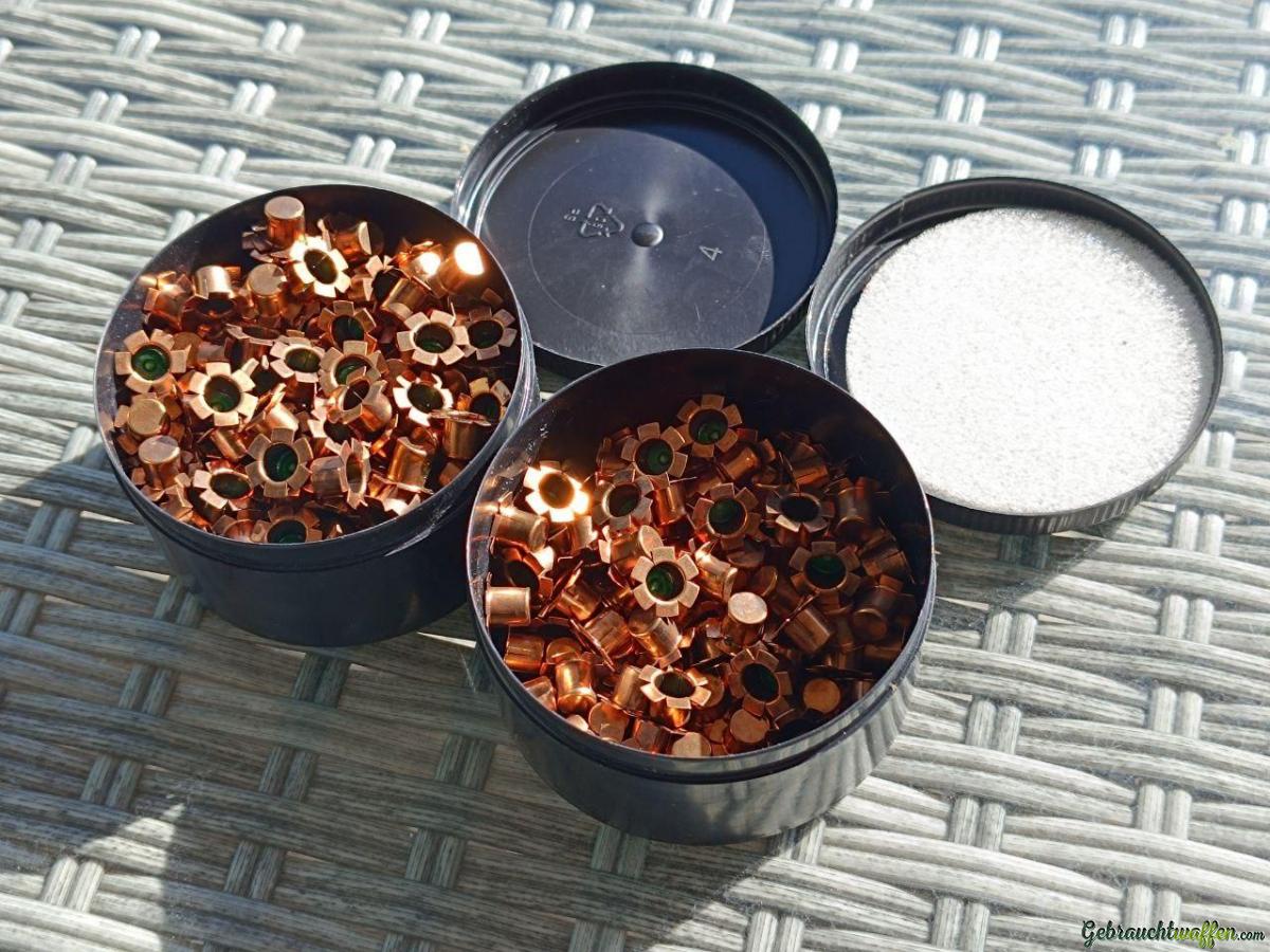 In gutem Zustand, sauberer Lauf, verkauft mit Pedersoli-Kugelform (525-Grain-Kugeln), Pedersoli-Reinigungsset Kaliber .54 und 1,5 Schachteln RWS Nr. 1218-Zündhütchen (~300 Zündhütchen).