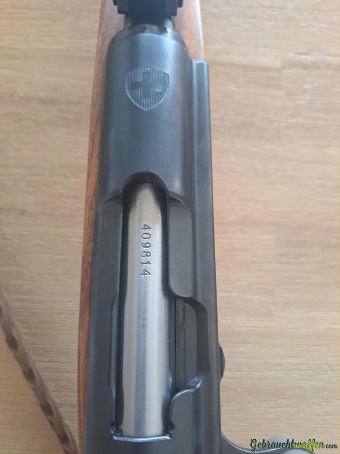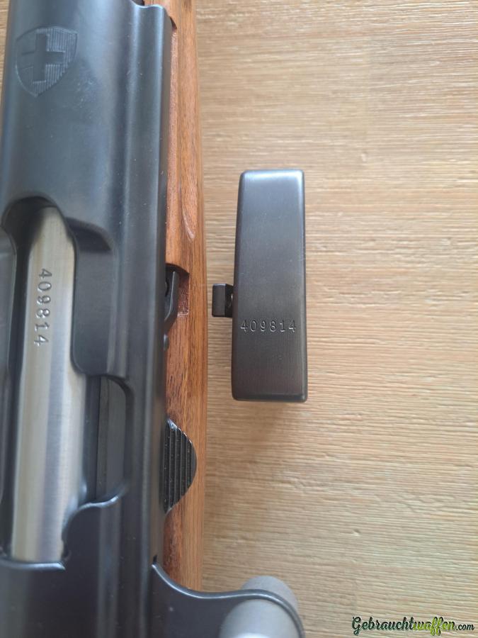 Nummer P. 409814, Magazin und Verschluss nummerngleich, (Private Serie 1956, Stückzahlen im Jahr 1956 sind 450)
