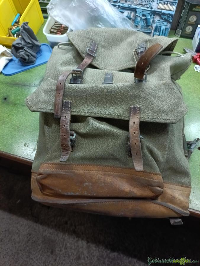Alter Militärrucksack sowie ein Schuhputzsetz 2 Gewehrputzsetz und einen Lederpatronengurt