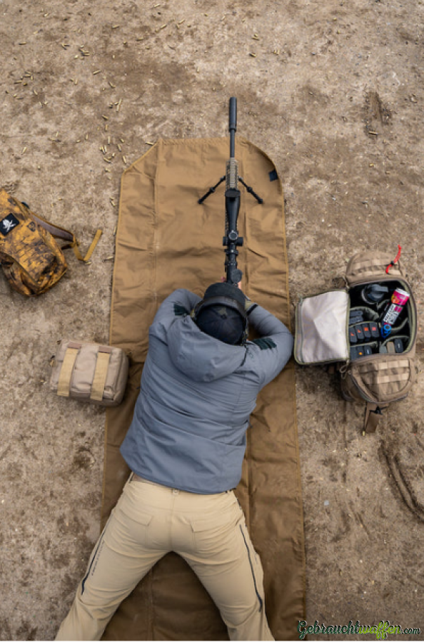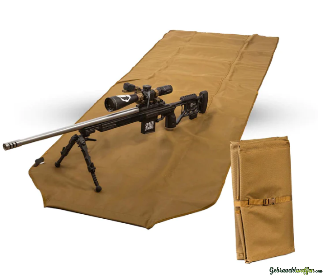 Die leichte Schiessmatte von Eberlestock ist die perfekte Ergänzung zur Ausrüstung für die Jagd oder die Long Range Schiessen. Zusammengerollt passt sie in jeden Rucksack. Durch ein kleines Gewicht am vorderen Teil der Matte, lässt diese sich beim Einrichten der Schiessposition einfach auswerfen und entfaltet sich selbstständig. Die Matte ist im mittleren Teil gepolstert und ermöglicht somit ein entspanntes Liegen auf hartem Untergrund. Die Rückseite der Schiessmatte ist aus PVC gefertigt und schützt vor feuchtem Untergrund.