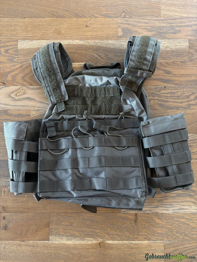 Der Plattenträger verfügt über Mollesystem, so dass Zubehörtaschen usw. problemlos am Träger befestigt werden können.