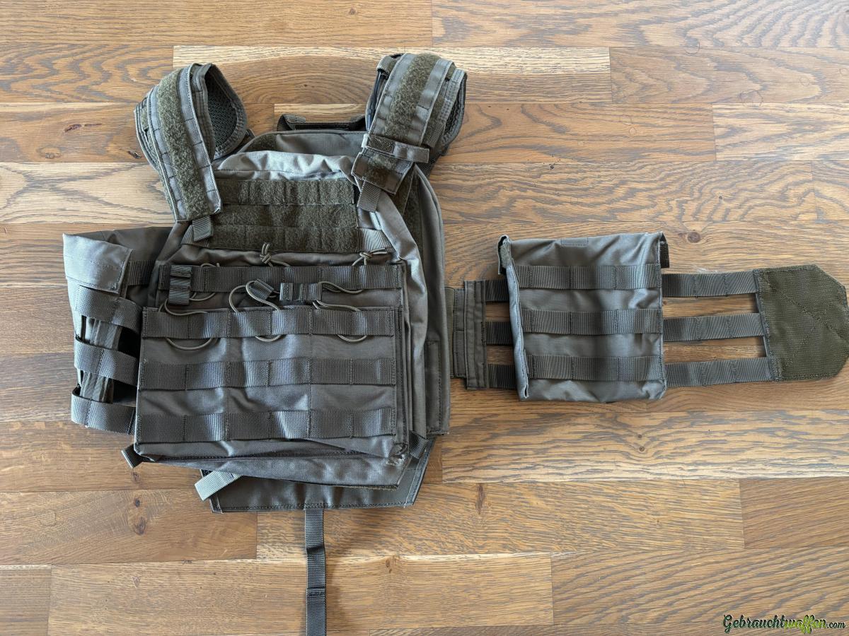 Der Plattenträger wird mit 2 Stück neuwertige (ungetragen und unbenutzt) Level IV ballistische Schutzplatten der europäischen Firma Protection Group Denmark geliefert (für den Schutz von Brust und Rücken).
