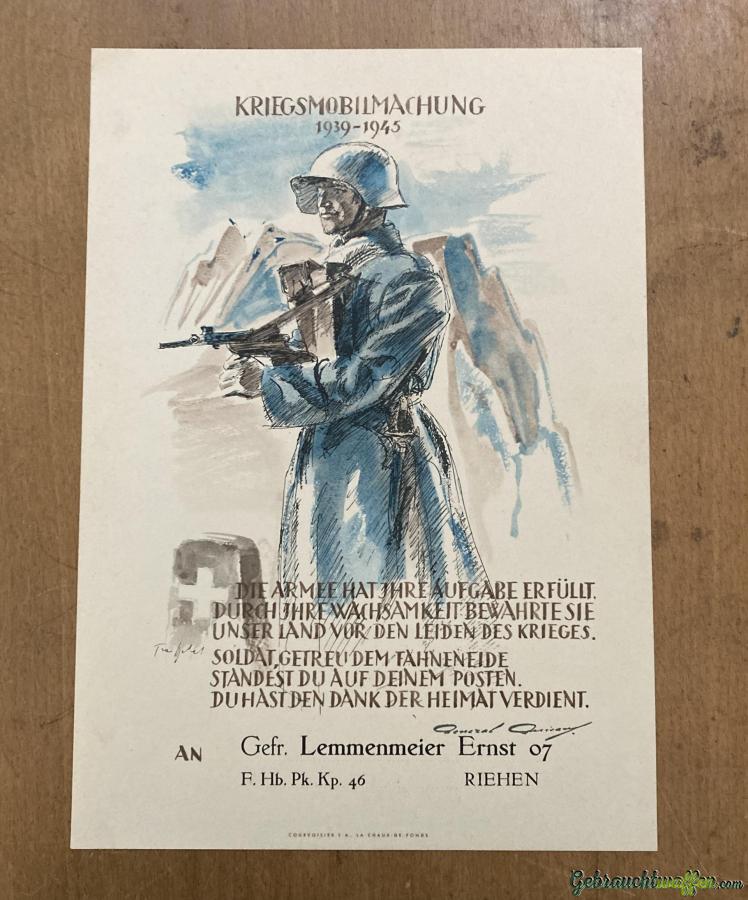1 Schweizer Urkunde "Kriegsmobilmachung 1939 - 1945