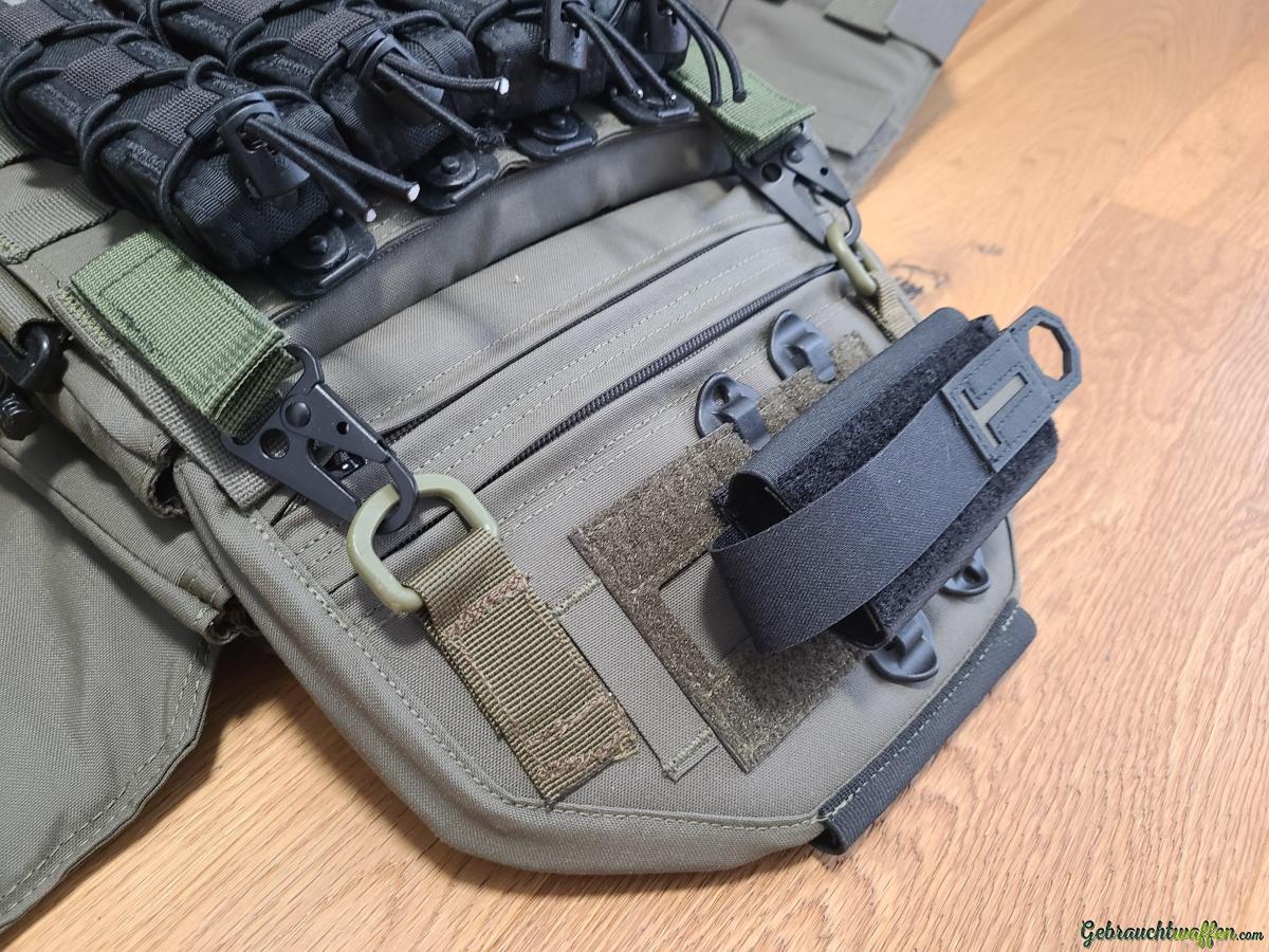 Montiert sind ein Tourniquet und 4 Lange 9mm Glock Magazinholster, die gegen Aufpreis Fr. 100 separat erhältlich sind.