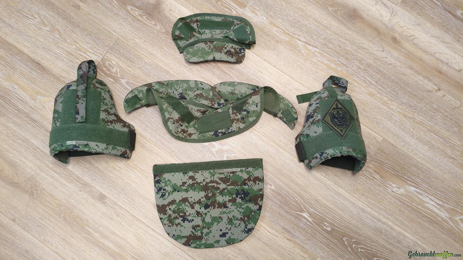 Der Lendenschutz und Schulterschutz kann auch an anderen Westen / Plattenträger montiert werden, da die Montage Universal ist. Beim Nackenschutz weiss ich es nicht.