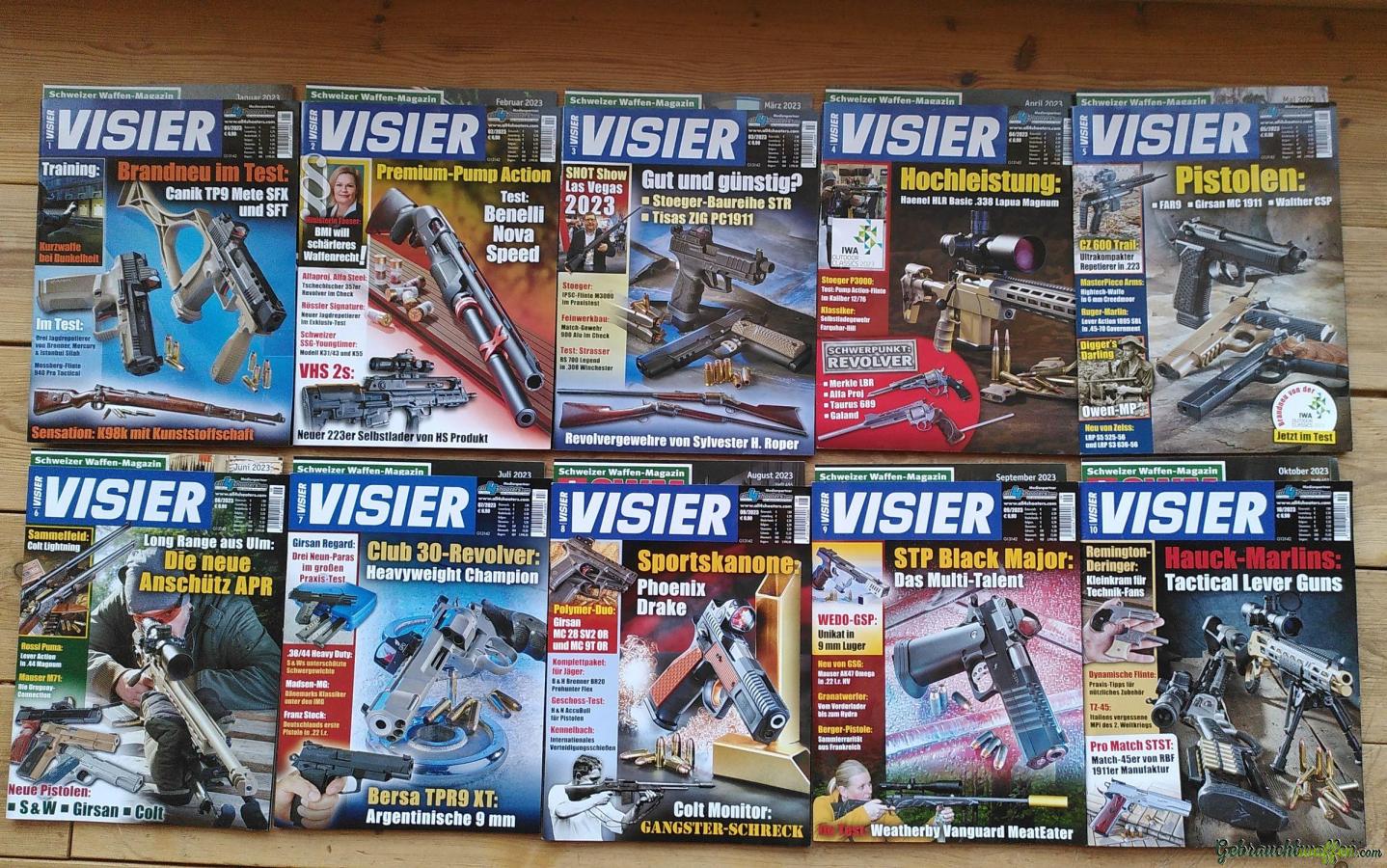 Hefte 1 bis 10 von den Magazinen «VISIER» und «Schweizer Waffen-Magazin» aus dem Jahr 2023