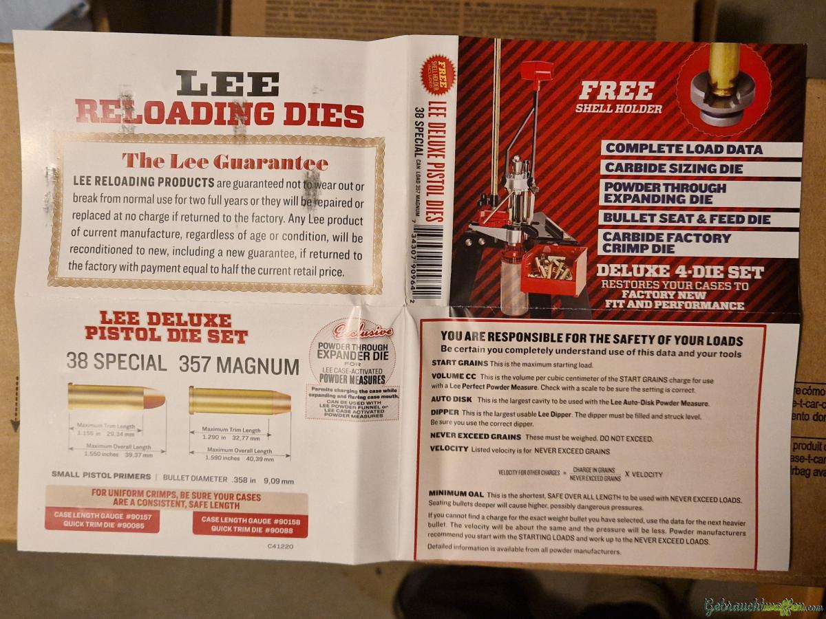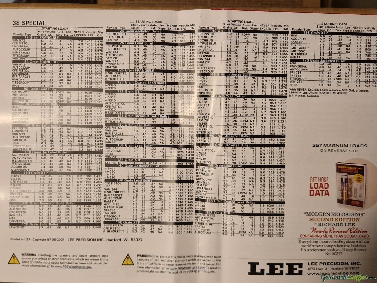 Das 4 DIE - DELUXE PISTOL DIE SET von LEE PRECISION ist die perfekte Wahl für alle, die ihre eigenen Munition für die .38 Special herstellen möchten. Dieses Set enthält alles, was du brauchst, um präzise und zuverlässige Patronen zu laden.