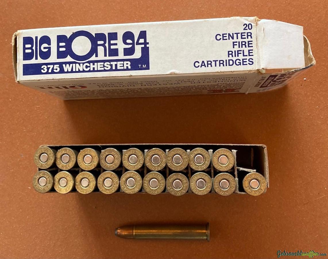 Rare .375 Winchester Big Bore Munition (original Winchester), 20 Center Fire Rifle Cartridges. Diese Munition ist sehr selten und kaum mehr zu haben.