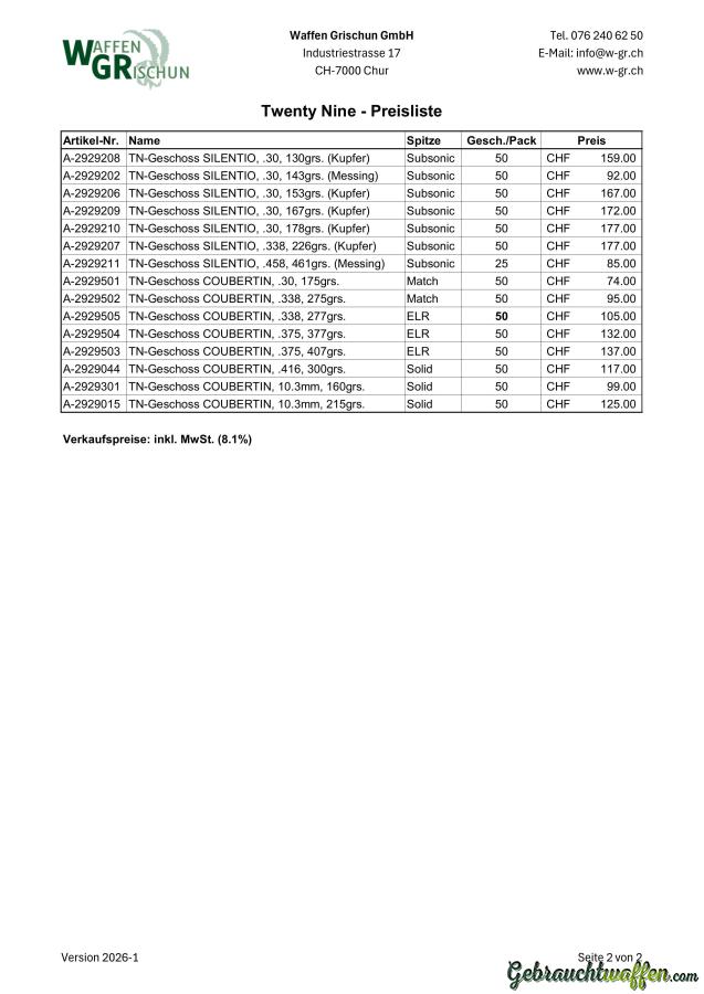 Ergänzend zum Geschossprogramm bietet Twenty-Nine speziell bearbeitete Hülsen mit reduziertem Innenvolumen an. Diese erleichtern das Wiederladen bei geringeren Pulverladungen und erweitern die Möglichkeiten im Bereich Subsonic- und Reduced-Load-Anwendungen.
