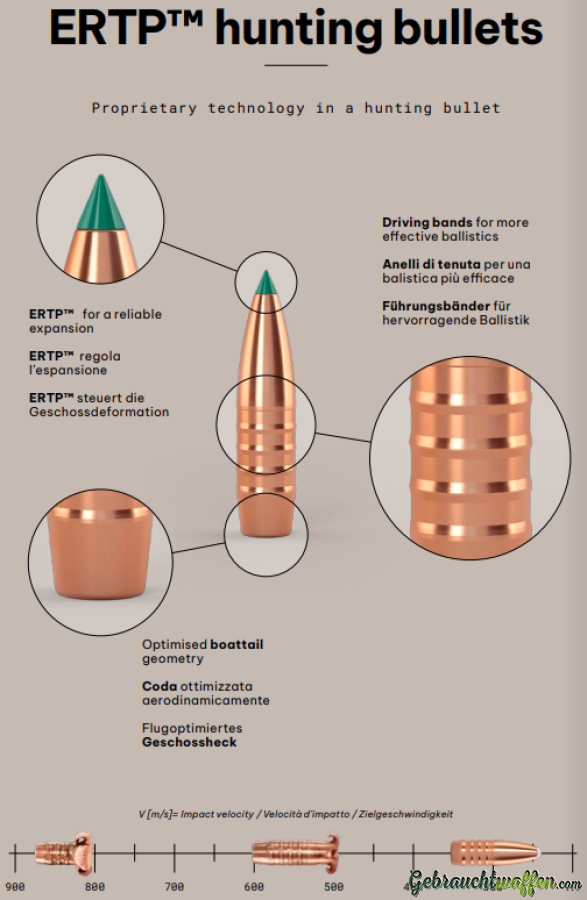 Das Ergebnis ist eine saubere, splitterfreie Deformation, hohe Präzision und eine effiziente Energieabgabe – ideal für waidgerechte Jagdanwendungen auf kurze wie auch lange Distanzen.