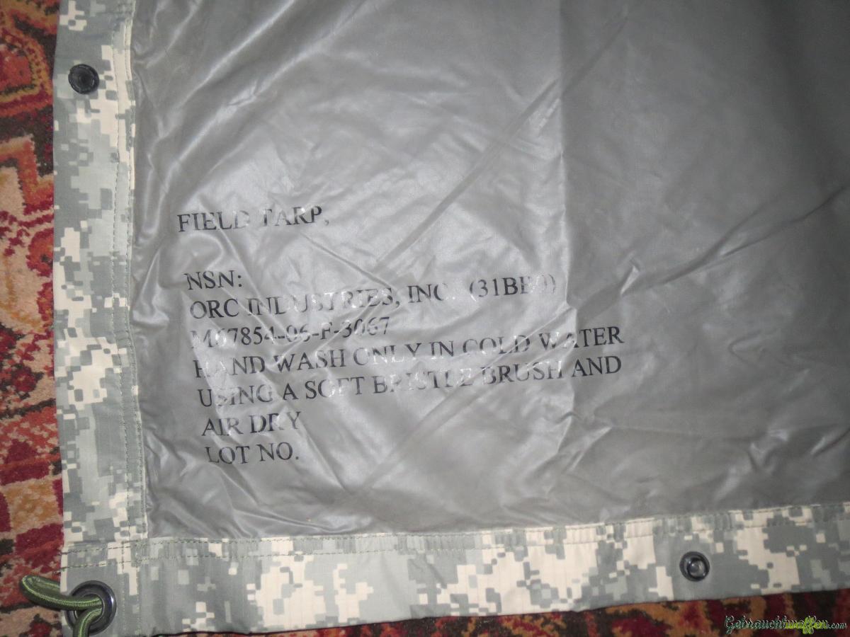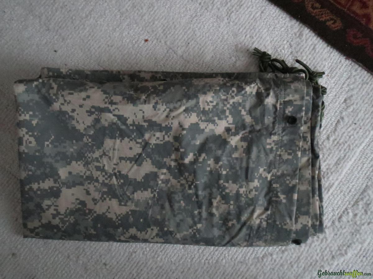 Zu verkaufen unbenutztes Tarp aus Beständen der US Army, Tarnmuster ACU . Innenschicht , grauer,dünne und wasserabweisende Plastikfolie. Mit 8 Ösen und Elastikschnur. Als improvisiertes Zelt od schützen der Ausrüstung. Masse 200x230cm , Nylon ca 600 D, sehr leicht, aber stabil.Keine Garantie od Rücknahme, Pflege, mit warmem Wasser von Hand reinigen.Versand zu Lasten Käufer, Abholung od kombinierter Versand nach Gewicht.
